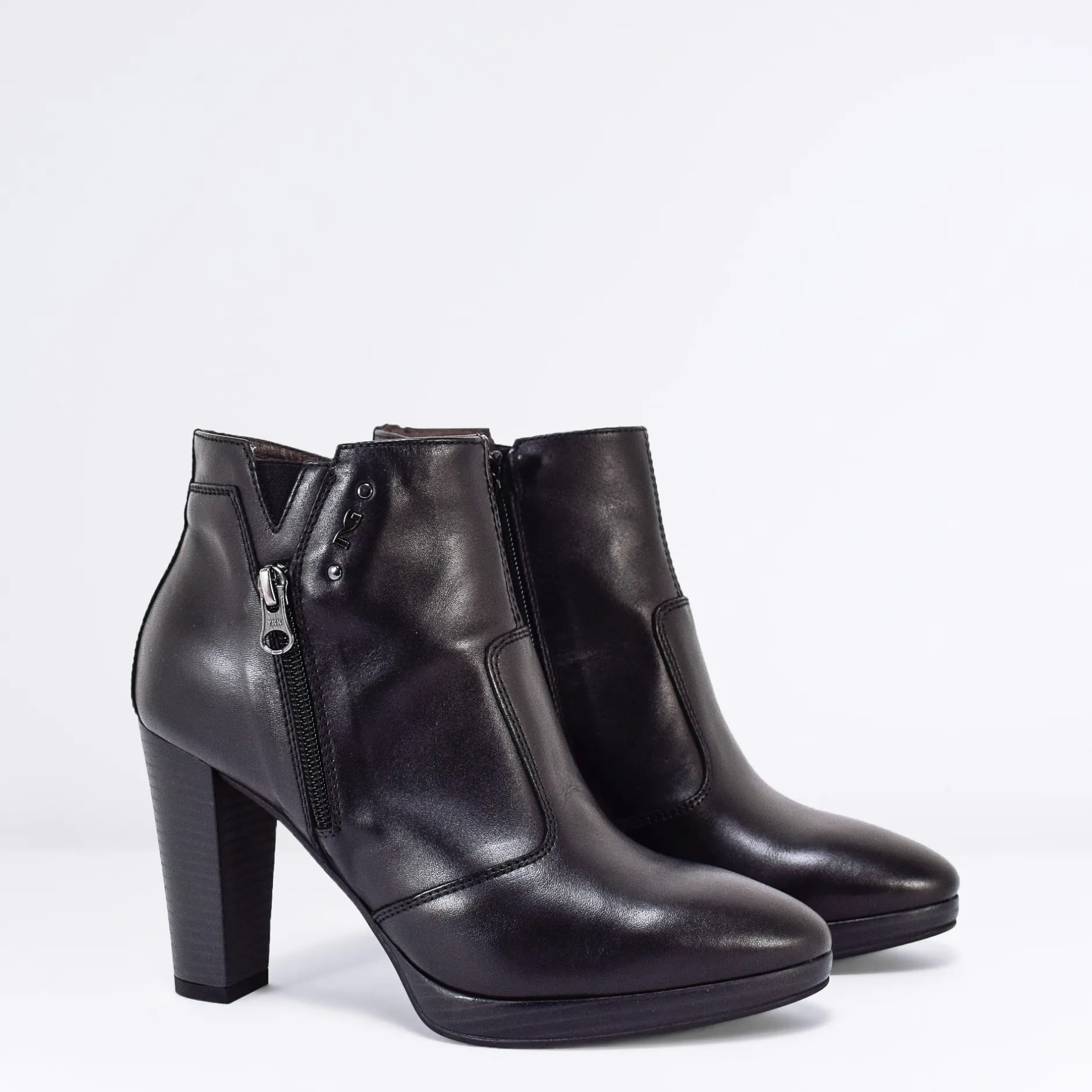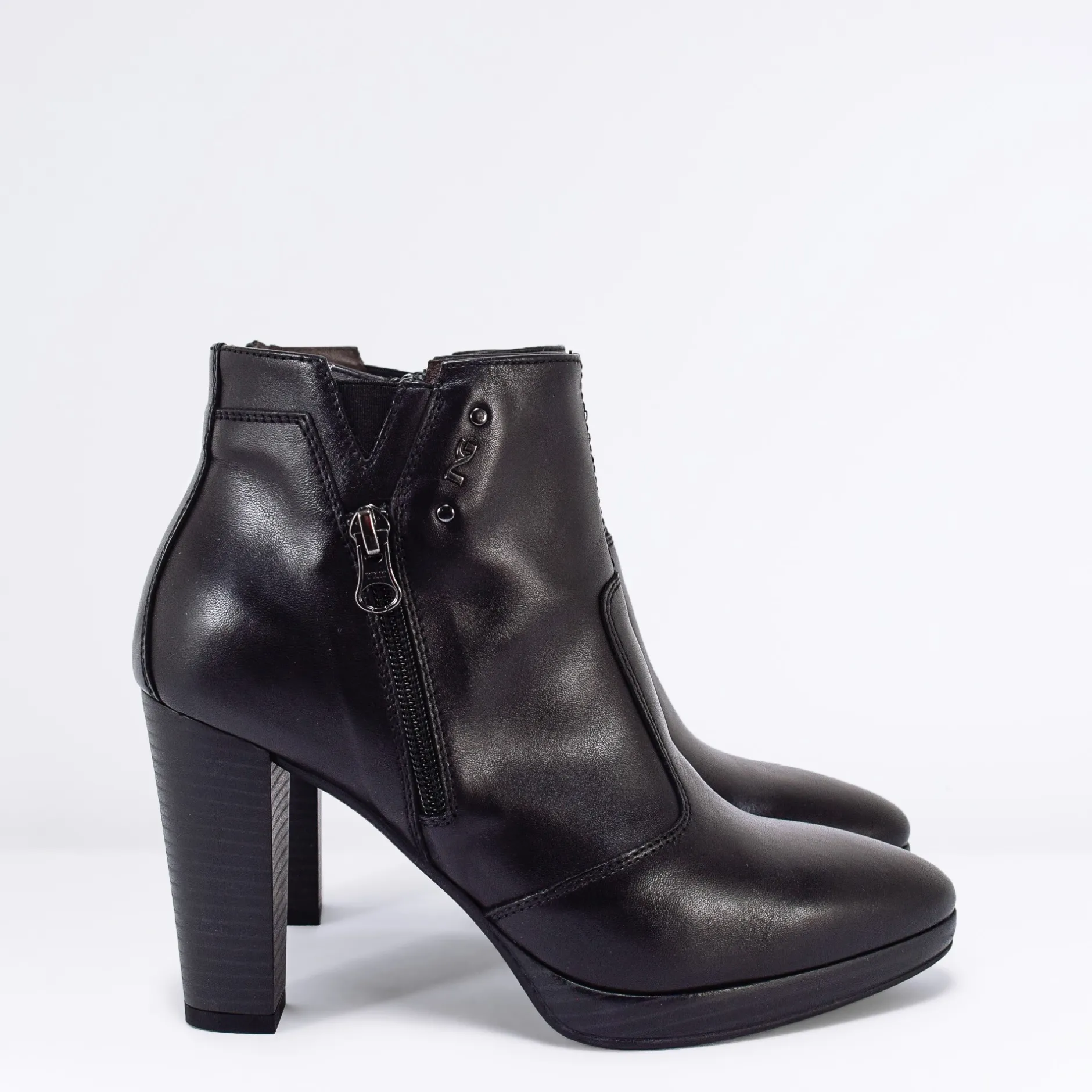 Tronchetto Nero Giardini in pelle con cerniera lato interno.